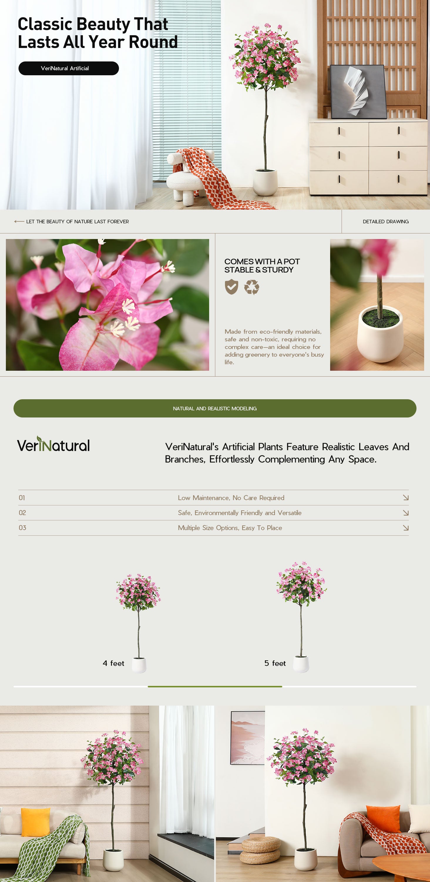 Add a pop of color to your decor with this vibrant Bougainvillea artificial tree, featuring stunning pink flowers that stem from a realistic brown trunk. Inspired by nature, the lush, lifelike flowers bring a refreshing, feminine touch to any room. Standing at 5FT/6FT tall in a classic nursery planter, this eye-catching faux bougainvillea tree is perfect for adding color and warmth to spaces like bathrooms, home offices, or kitchens. Expertly designed and approved by horticulturists, this maintenance-free tree offers year-round beauty and charm.