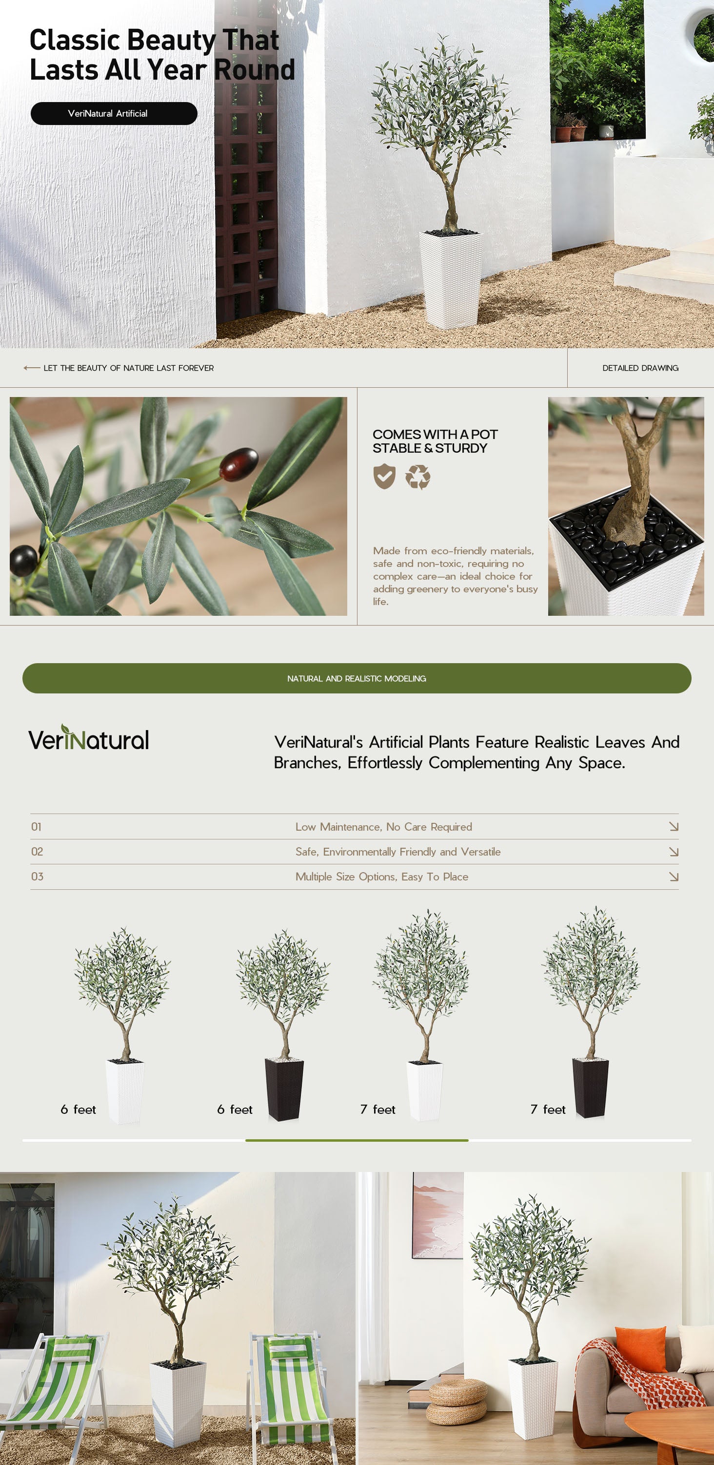 Enhance your decor with this lifelike, 6FT/7FT artificial olive tree—a timeless addition that brings warmth and charm to any space.