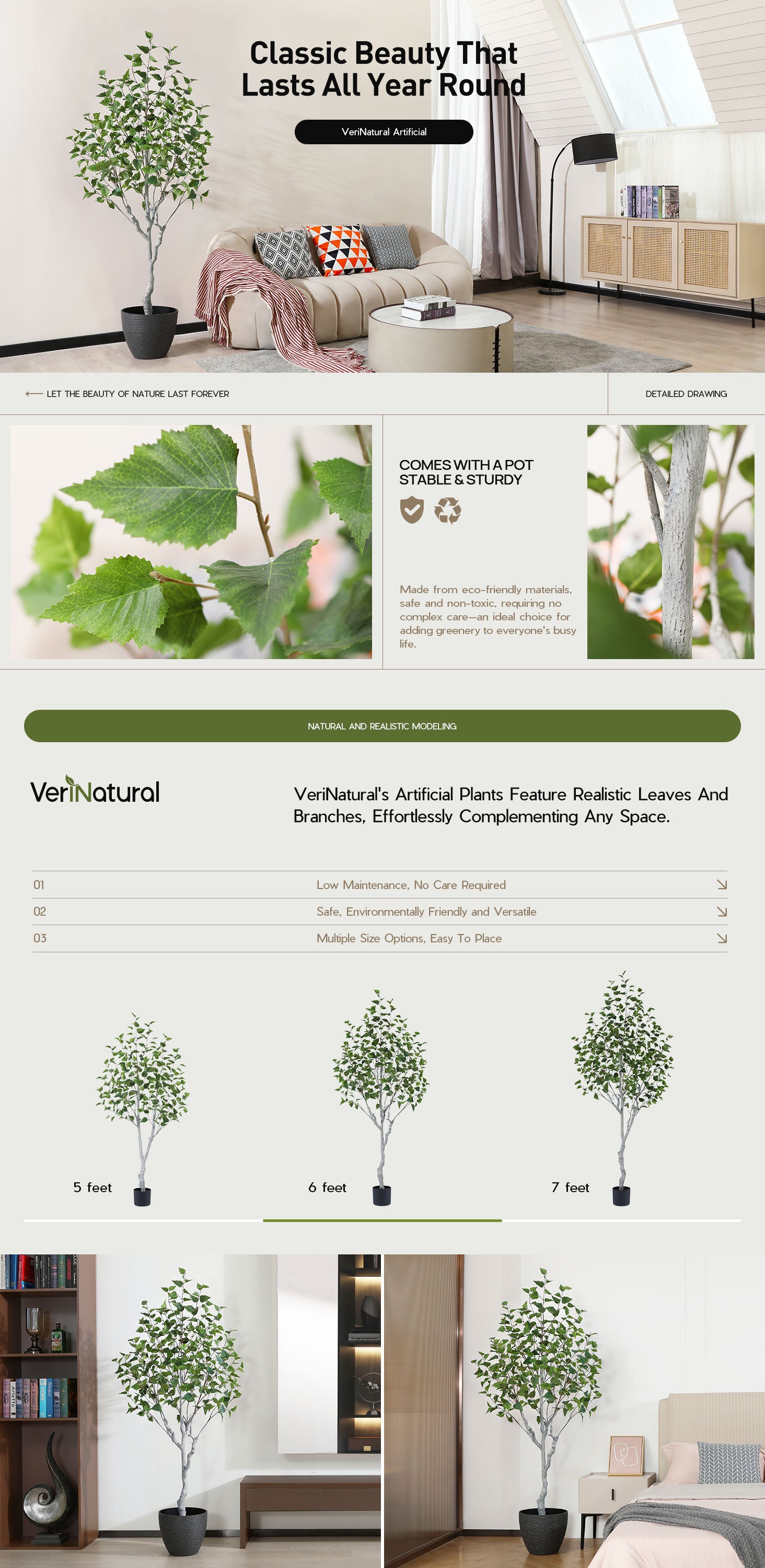 Standing tall at 5FT/6FT/7FT , this birch tree brings the beauty of nature into your home. Its impressive height and fullness add depth and dimension to any indoor space, making it a striking focal point for years to come.