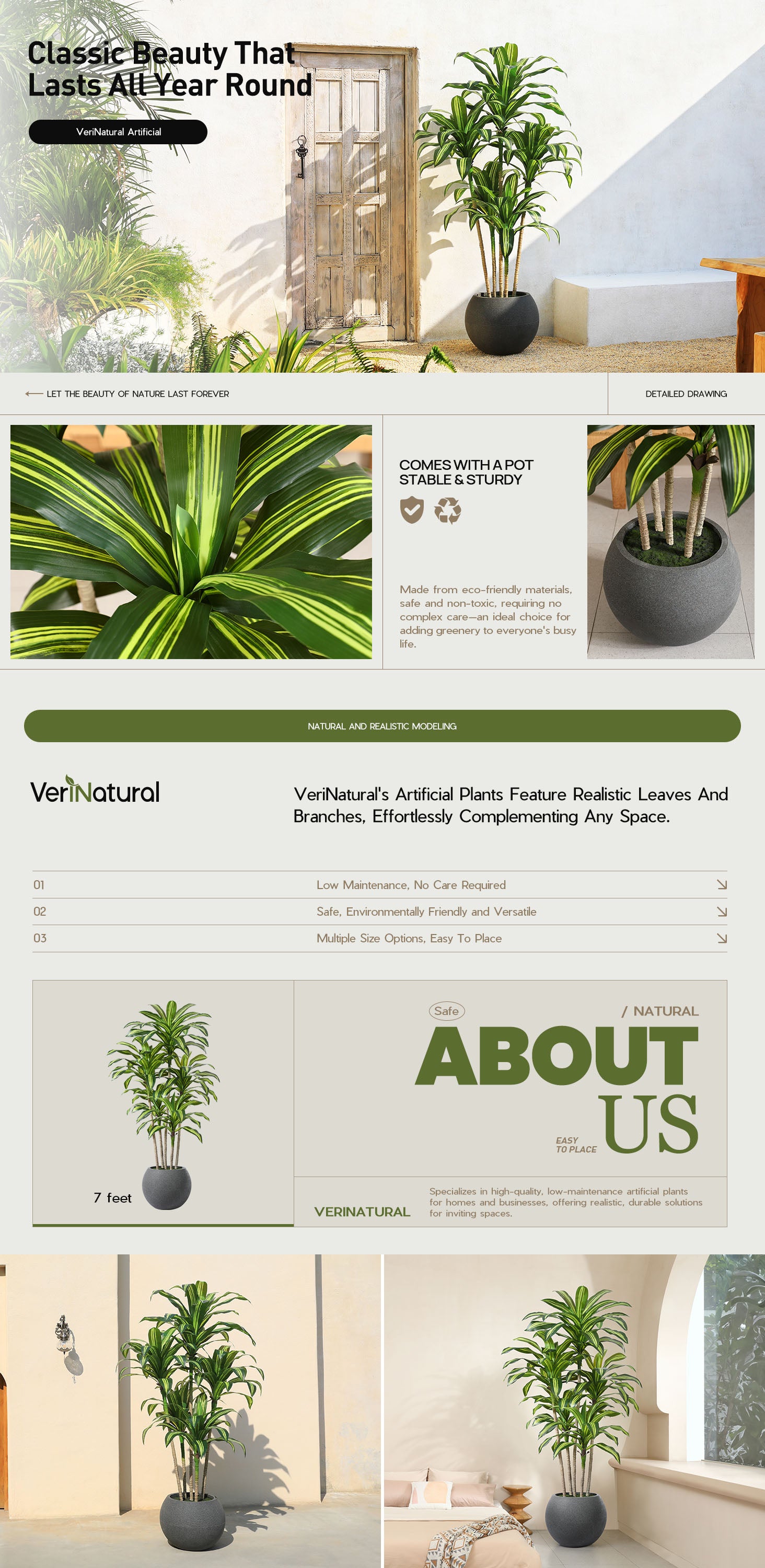 Enjoy lush greenery all year round with no need for watering, pruning, or sunlight. This faux dracaena tree stays fresh in any season, indoors or in sheltered outdoor spaces. Just dust occasionally to keep its vibrant appearance—perfect for plant lovers and those with busy schedules alike.