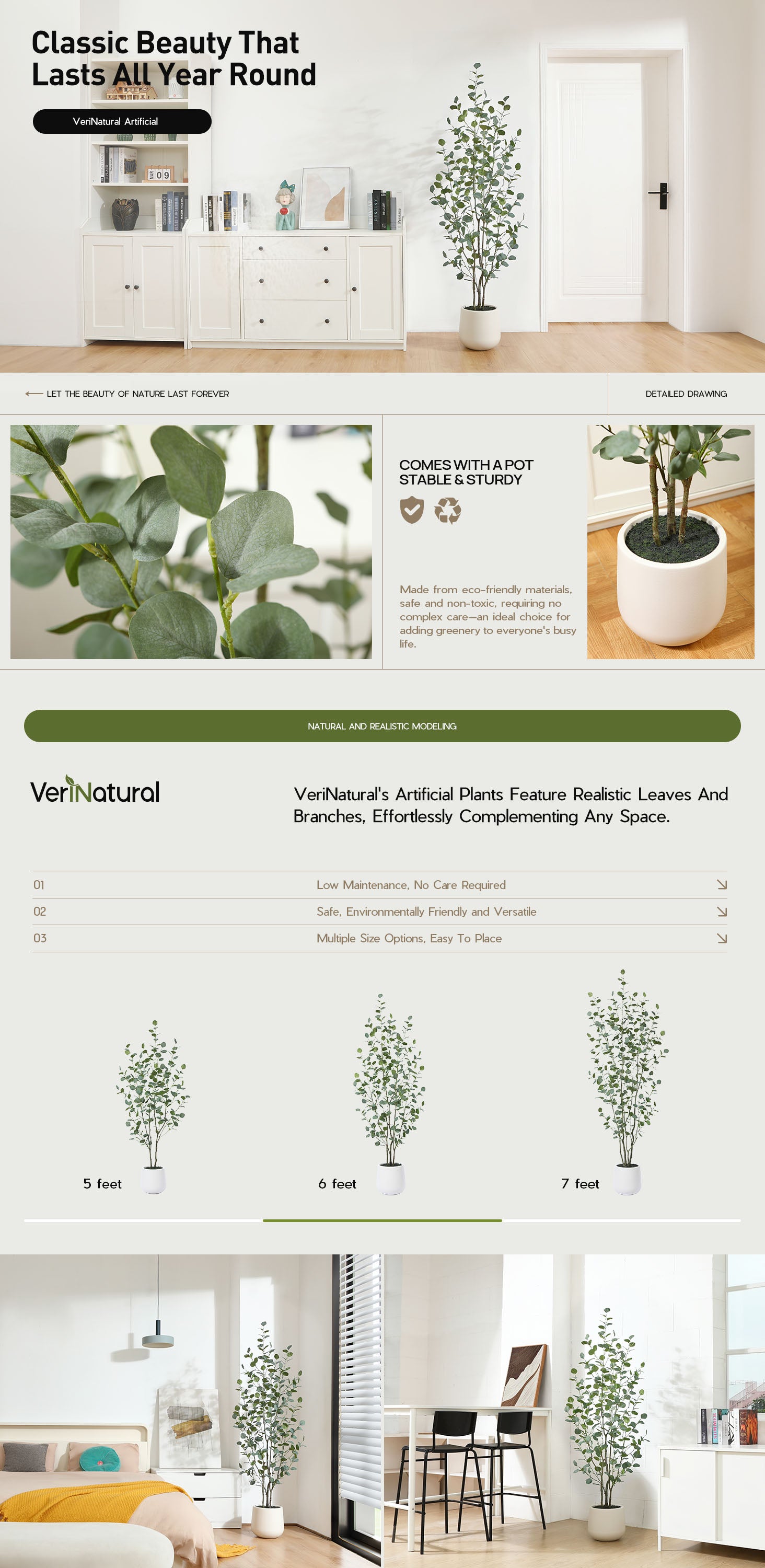Transform your space with this impressive 5FT/6FT/7FT tall artificial eucalyptus tree. Featuring a stylish pot , this faux tree adds a touch of elegance to any decor. Designed by VeriNatural, the unique eucalyptus leaf design mimics the look of a real tree, making it a striking focal point in your home or office.
