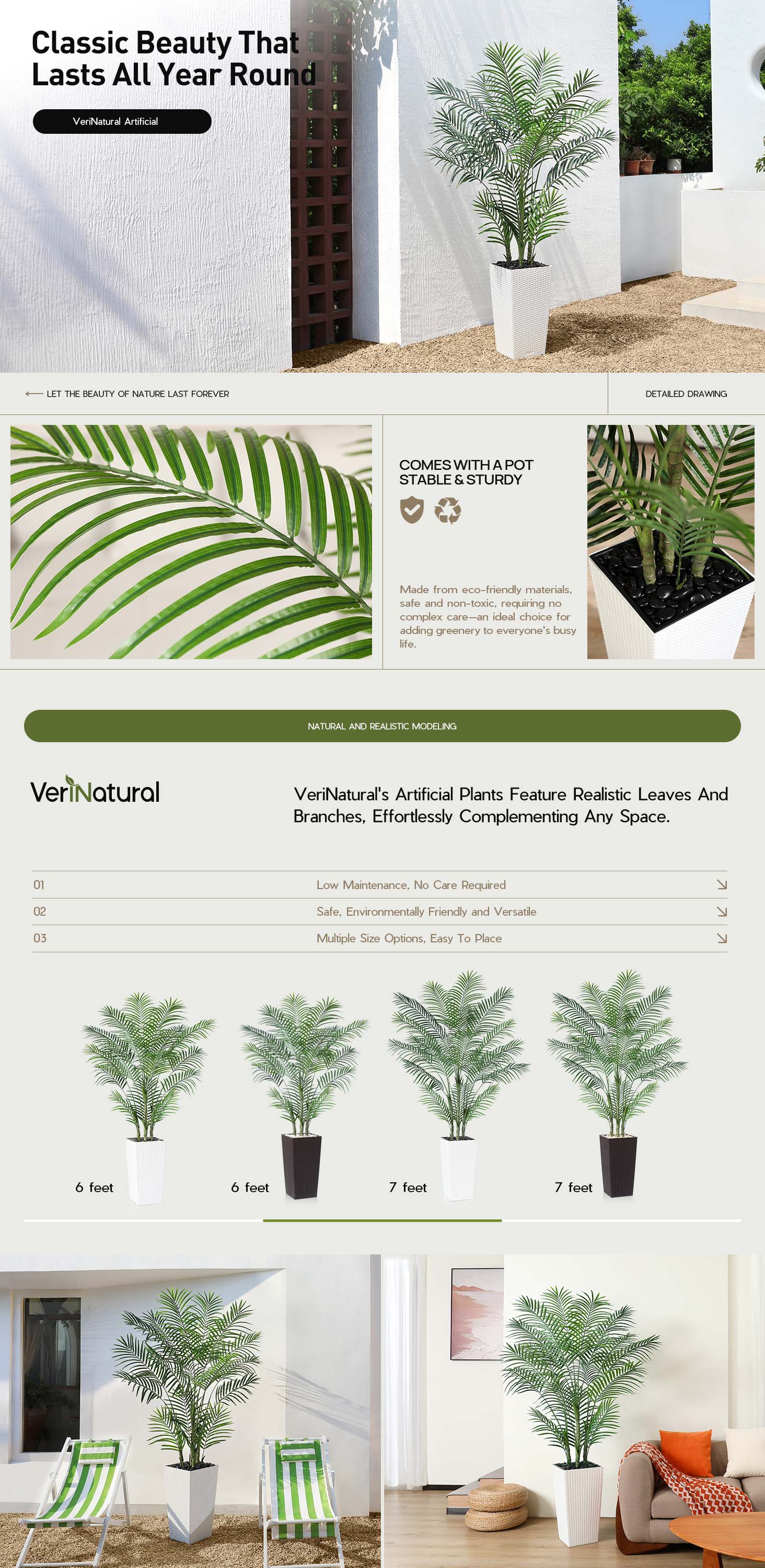 Standing at an impressive 6FT/7FT tall, this palm tree features detachable trunks for lightweight, hassle-free assembly. Relocate it with ease to any room or location that inspires you, adding natural beauty wherever you go!