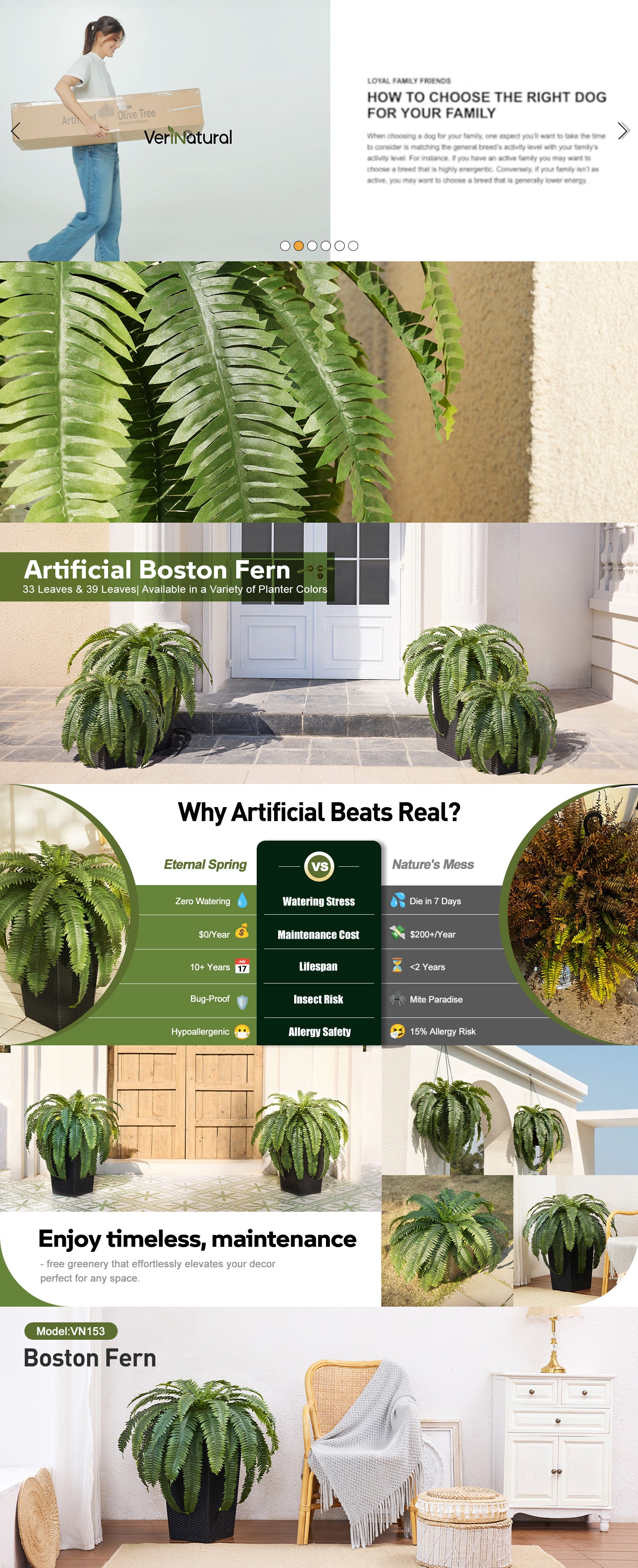 đżăEasy to Take Care Ofă: Our UV-resistant lifelike Artificial Boston Fern requires no water, soil, fertilizer, or pruningâcompletely maintenance-free and unaffected by weather. Enjoy the beauty of greenery anytime while saving time and effort.