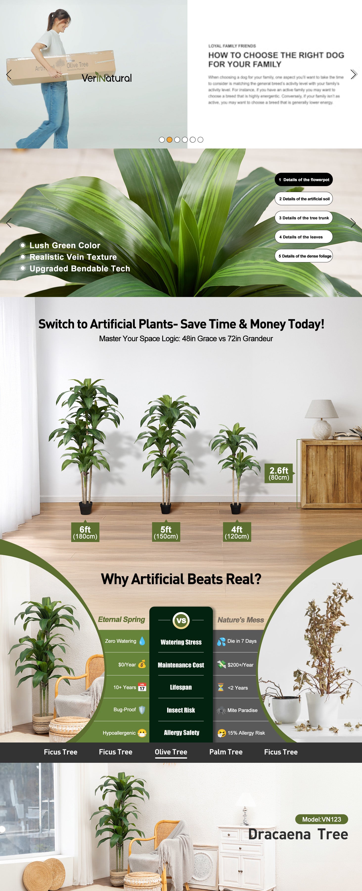 VeriNatural 4/5/6FT Artificial Dracaena Tree UV Resistant for Indoor & Outdoor(VN123)