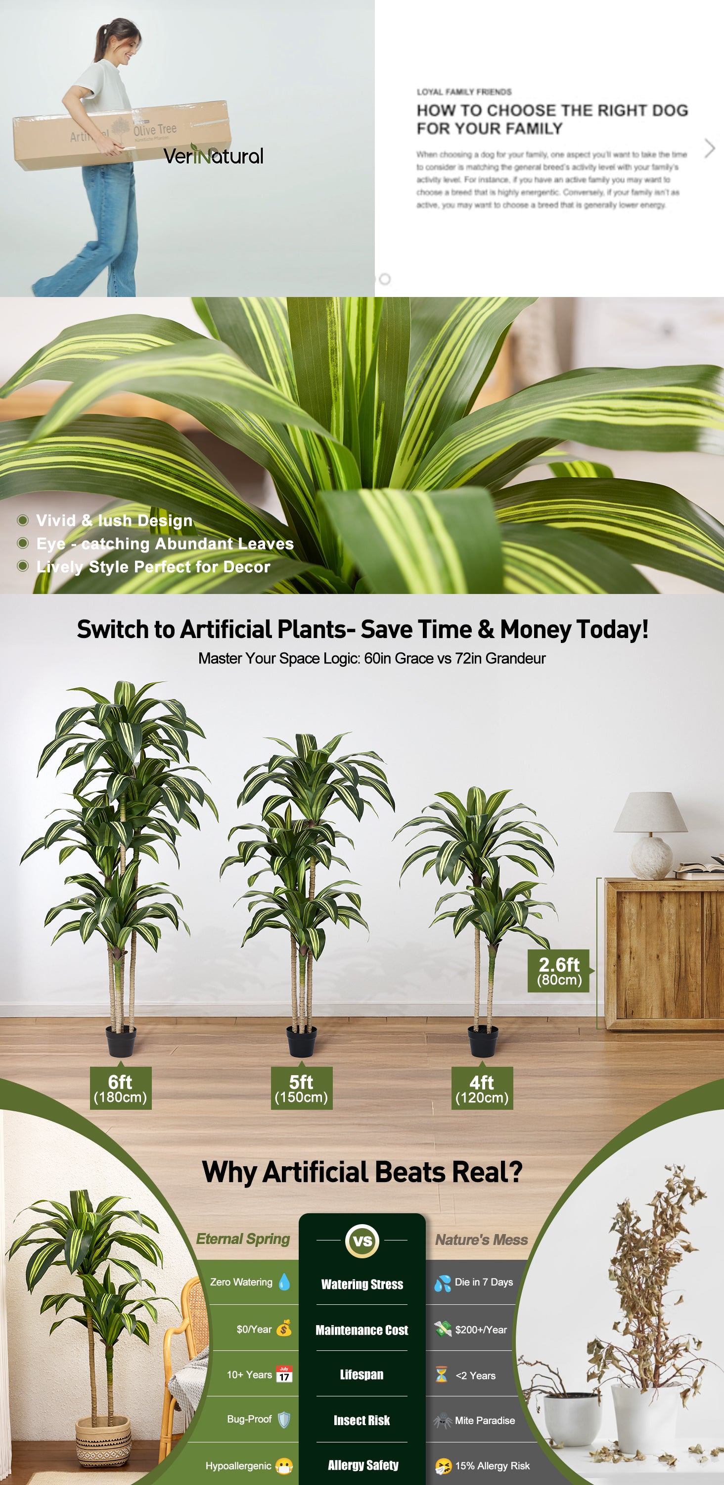 No Maintenance Needed: Say goodbye to the stress of watering, pruning, or worrying about sunlight. Our artificial Dracaena tree requires absolutely no care and remains beautiful year-round, making it ideal for those with busy schedules or limited natural light.