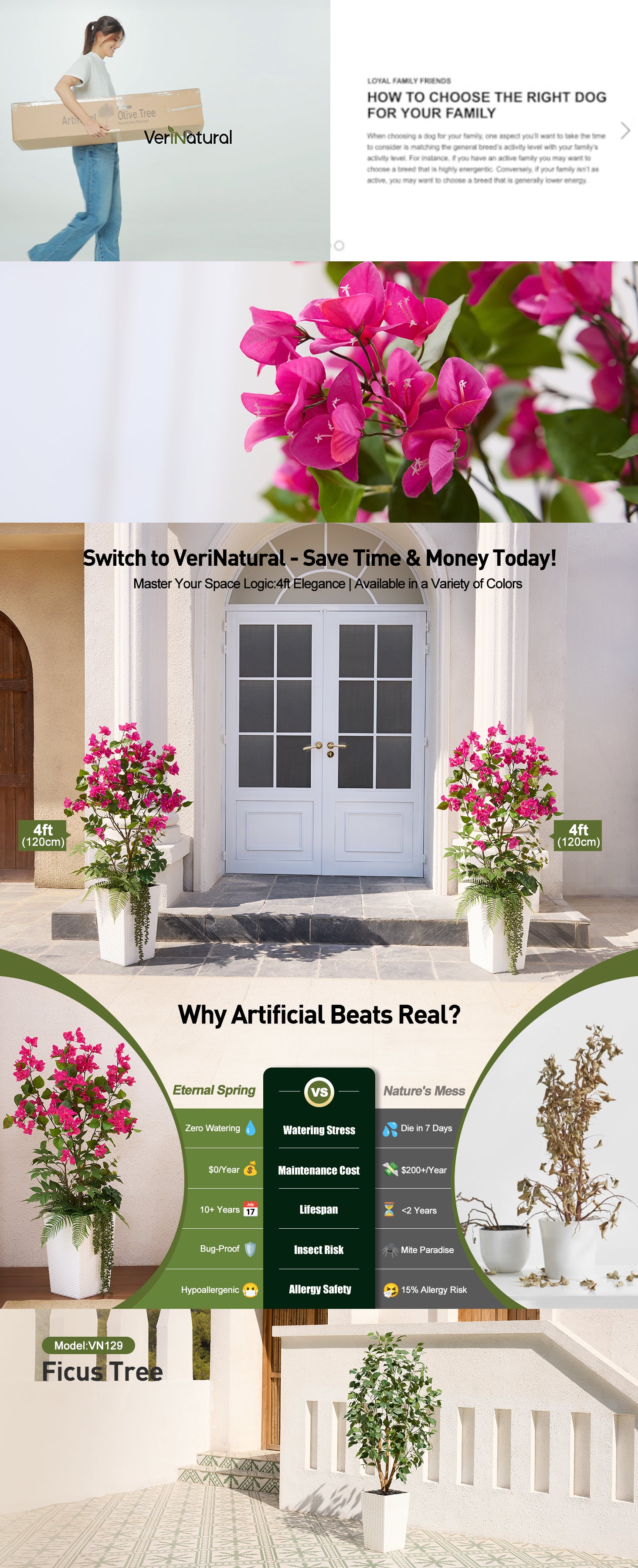 VeriNatural 4FT Mixed Greens and Bougainvillea Artificial Plants with Black Taper Planter for Indoor & Outdoor (1/2-Pack)(VN146)