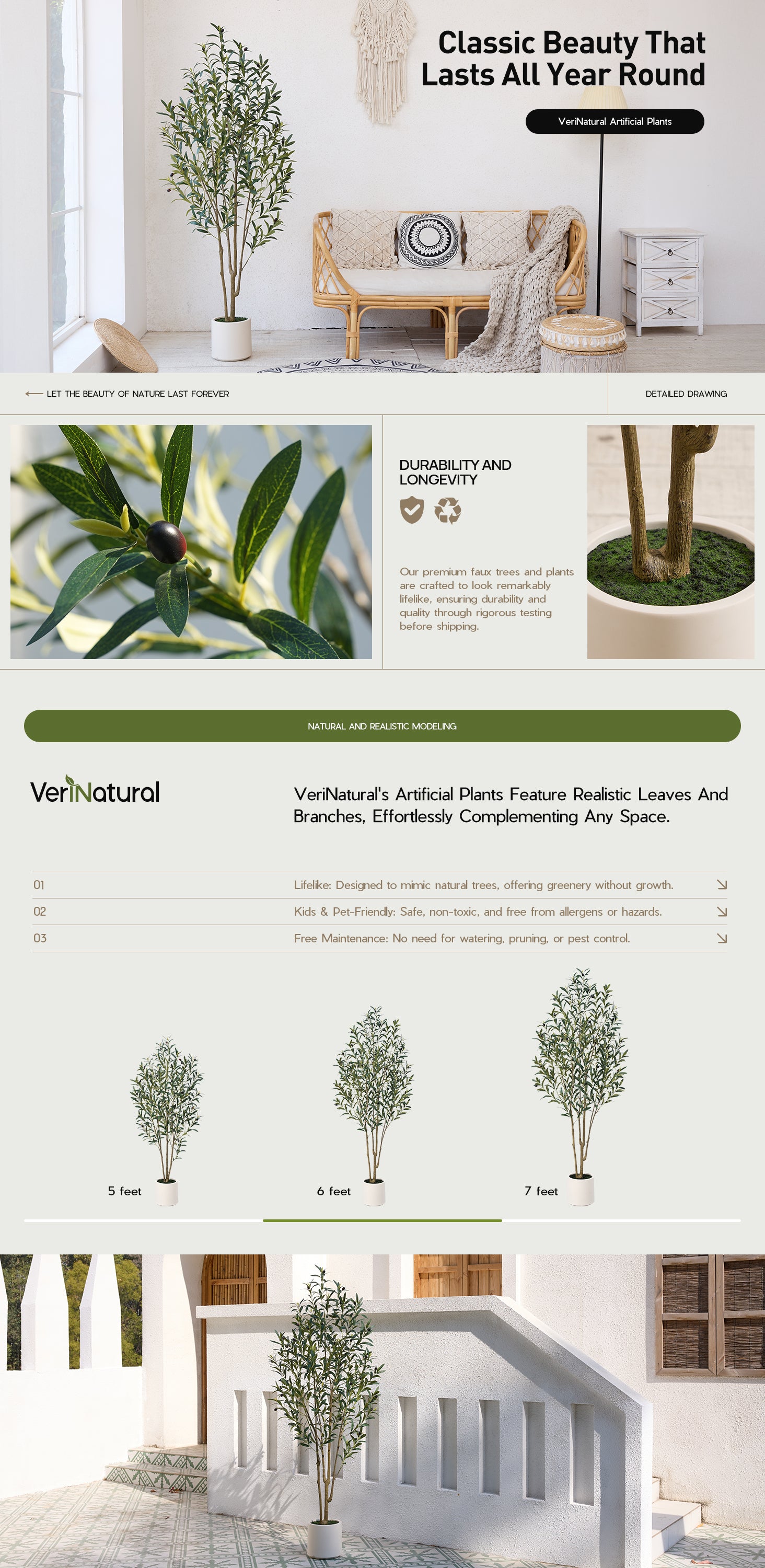 VeriNatural 5/6/7FT UV Resistant Artificial Olive Tree with 1365 Leaves in White Decorative Planter for Indoor & Outdoor(VN158)