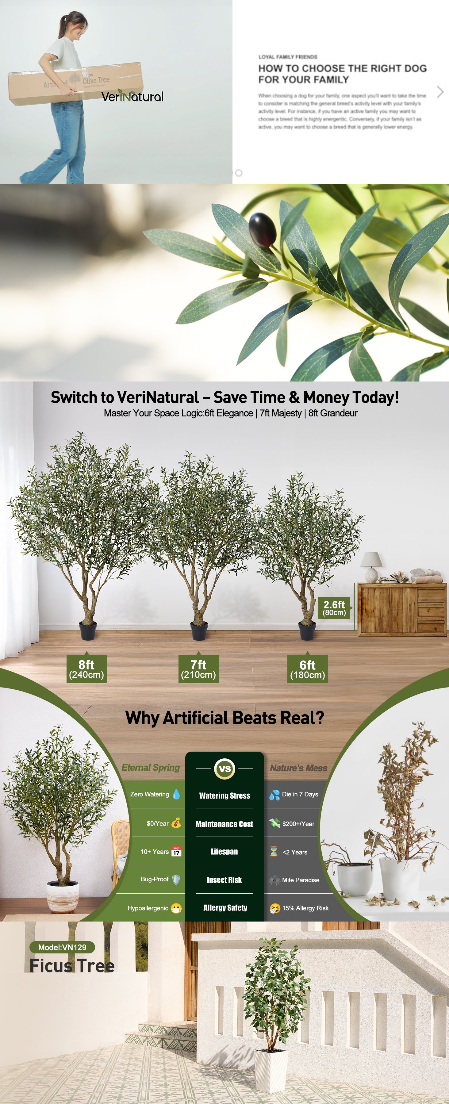VeriNatural 6/7/8FT UV Resistant Artificial Olive Tree with Black Planter for Indoor & Outdoor (VN138)
