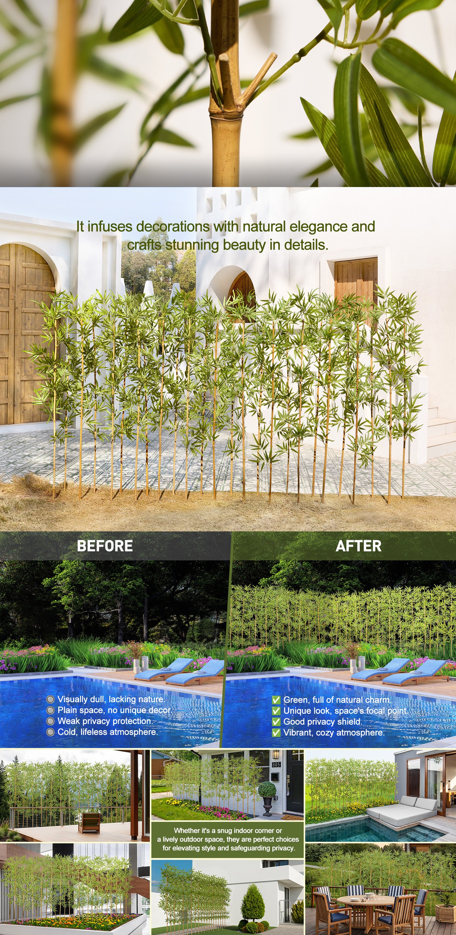 Available in 5FT / 6FT / 7FT Heights — Choose from 12, 24, or 36 Natural-Looking Bamboo Stalks